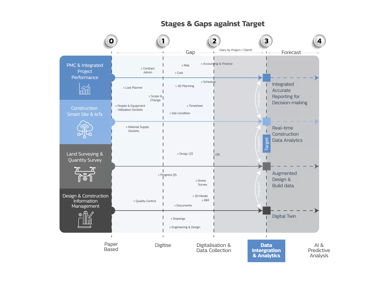 Step 2 – Gap analysis between the current digital stage and stage 3 – data integration & analytics.