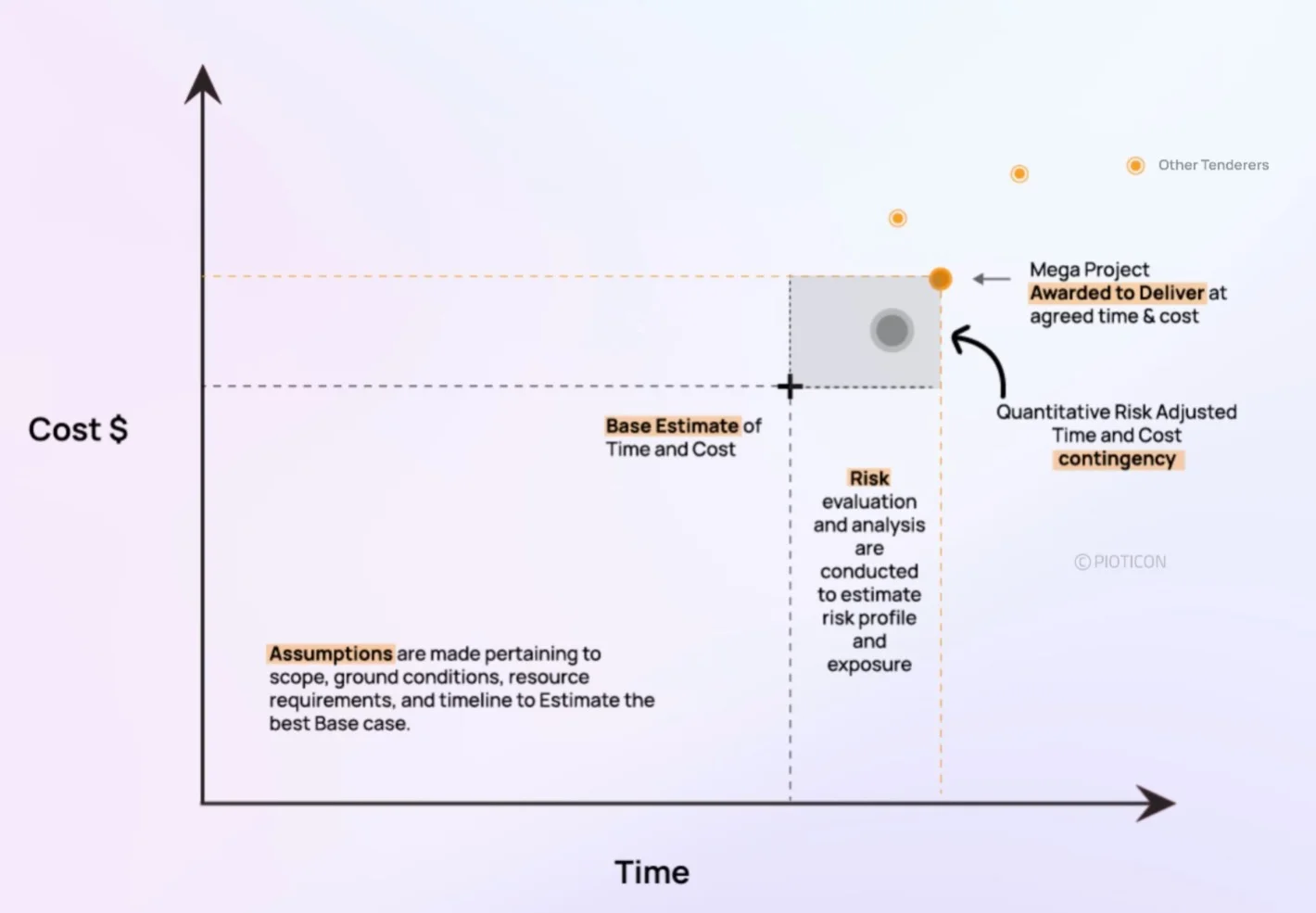 This is the point where decision-makers and sponsors sign off based on a projected value case, often optimistic but framed with the assumption that risk-adjusted contingencies can cover variability. The project is assessed as financially and strategically viable at this stage.