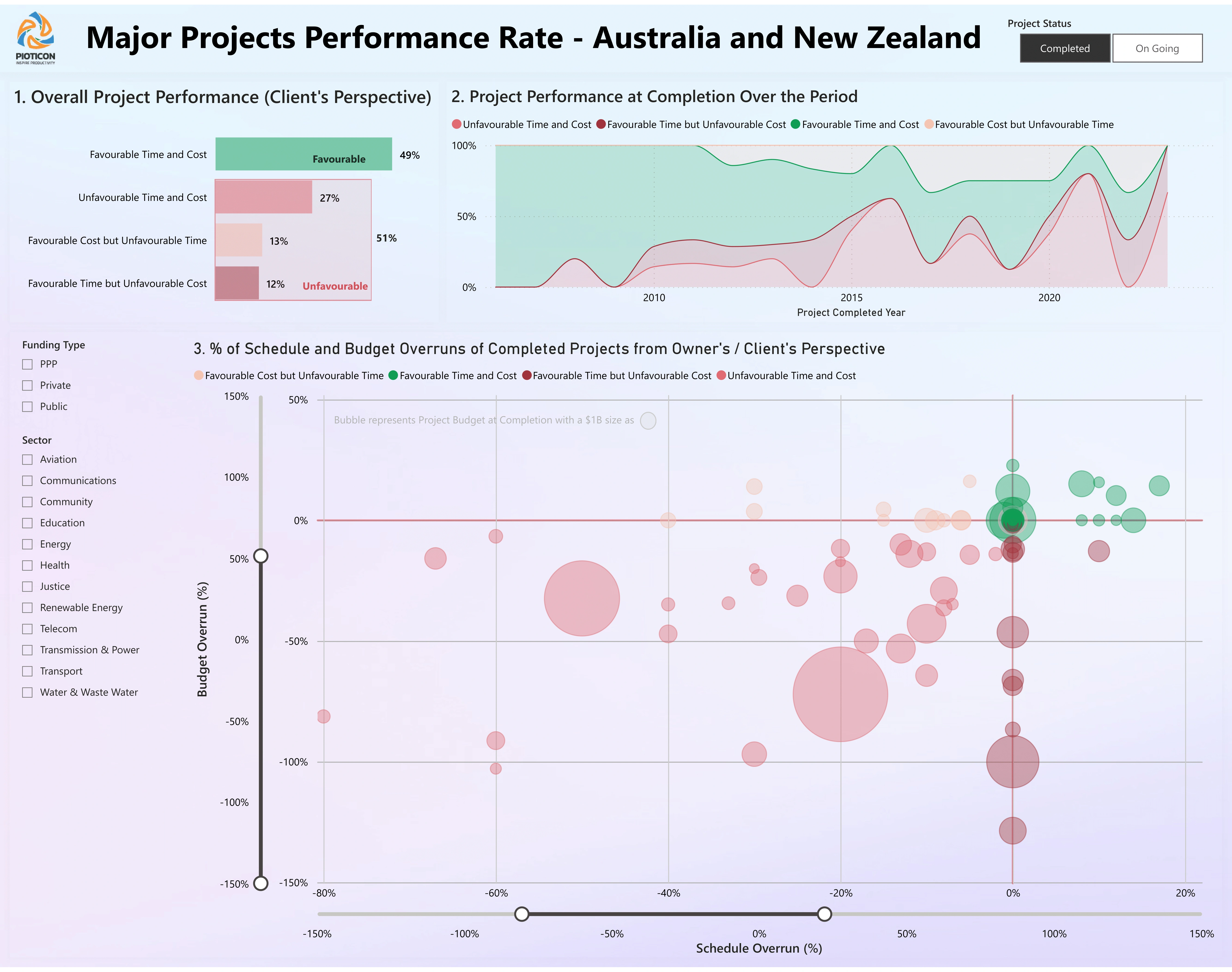 In the case of major project failures in Australia and New Zealand, a clear pattern is emerging. Data shows that nearly 51% of awarded projects deliver unfavorably to Owners compared to original expectations. Even the favorable projects from client/owner’s perspective, contractor might be facing significant loss and not meeting their financial benefits. That is due to the disparity between the contract amount and the contractors’ actual final cost and time.