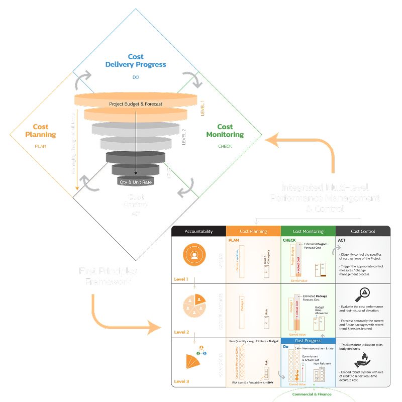 Pioticon’s Cost Management capability integrates scope, schedule, progress, and risk into a unified cost control system, enabling early visibility of exposure, credible forecasting, and confident funding decisions—shifting cost control from reactive reporting to proactive performance management.